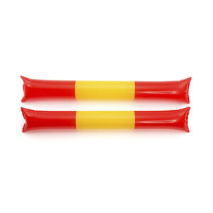 Par de bastom sticks/aplaudidores en resistente y ruidoso material LDPE de diseño España. Reutilizables y con válvula de inflado incluida.