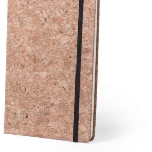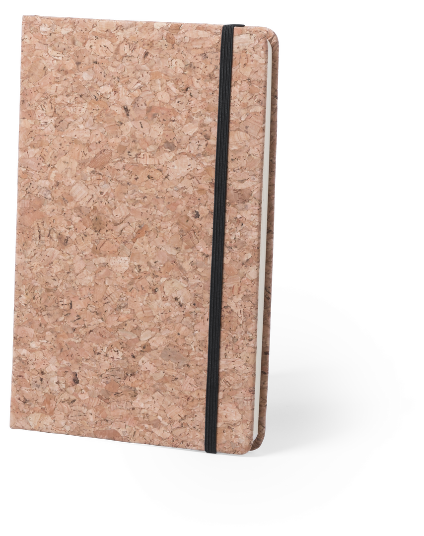 Bloc de notas ecológico en corcho natural y con tapas rígidas. De 80 hojas lisas con acabado natural, elástico de sujeción y marcapáginas de tela en sobrio color negro.