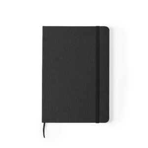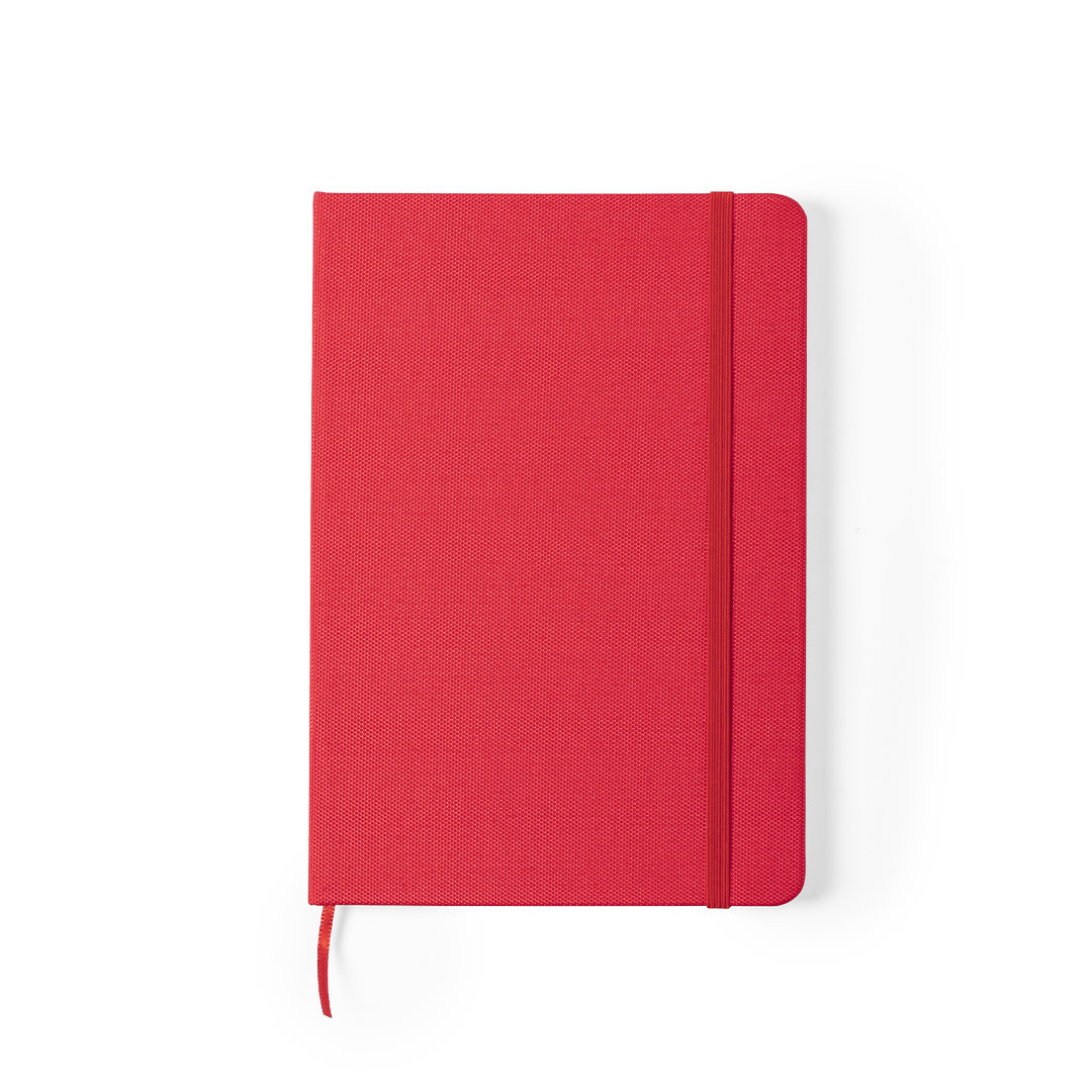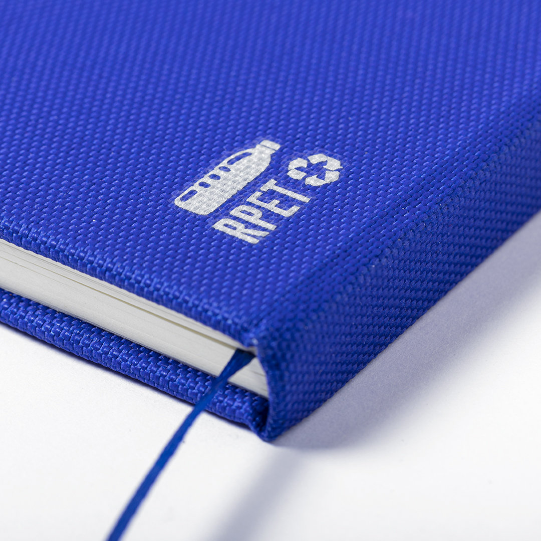 Bloc de notas de línea nature con tapas rígidas en 600D RPET, elaborado a partir de plástico reciclado para así fomentar la reutilización de residuos plásticos y contribuir a la sostenibilidad del planeta. Disponible en amplia gama de colores, incluye 80 hojas con disposición a una raya. Con elástico de sujeción y marcapáginas de tela a juego. Distintivo RPET en parte trasera.