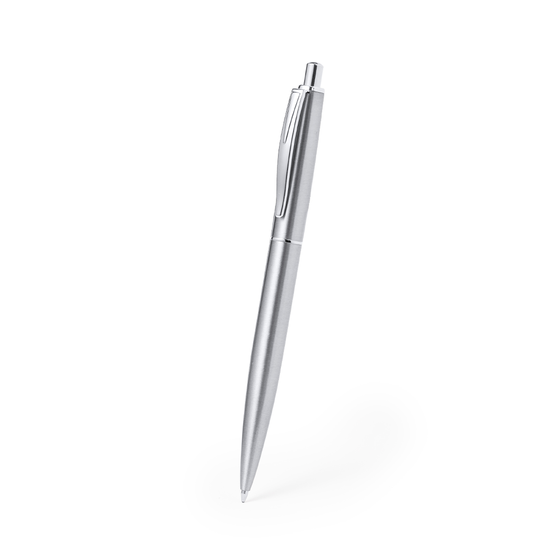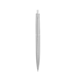 Refinado bolígrafo en Acero Inox Reciclado con mecanismo pulsador. Cuerpo en resistente Acero Inox Reciclado de acabado mate y clip metálico. Con pulsador retráctil