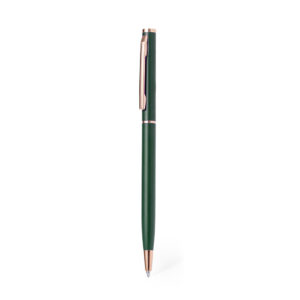 Excelente bolígrafo de aluminio con mecanismo giratorio. Cuerpo en resistente aluminio de acabado mate con elementos decorativos de elegante acabado color cobre