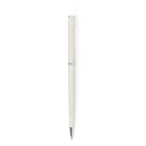 Bolígrafo con cuerpo en caña de trigo. Clip metálico y accesorios cromados. De mecanismo giratorio y de tinta azul. Con logotipo caña de trigo y disponible en color nature.La caña de trigo fomenta la utilización de materias primas naturales