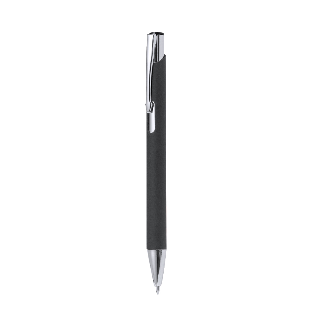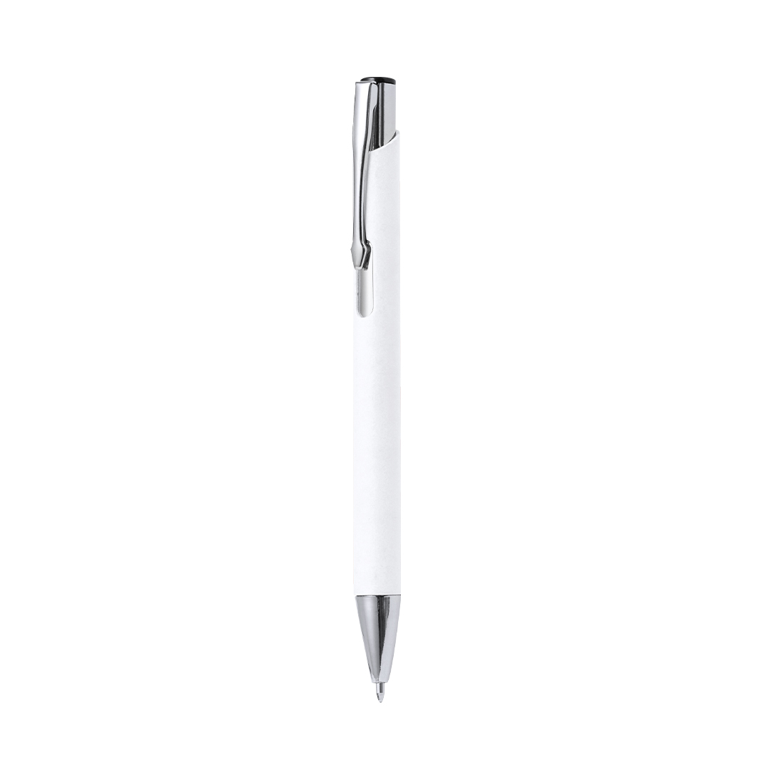 Bolígrafo de línea nature con mecanismo pulsador. Combinación de cuerpo en papel reciclado de color natural y accesorios en metal. Disponible en variada gama de colores