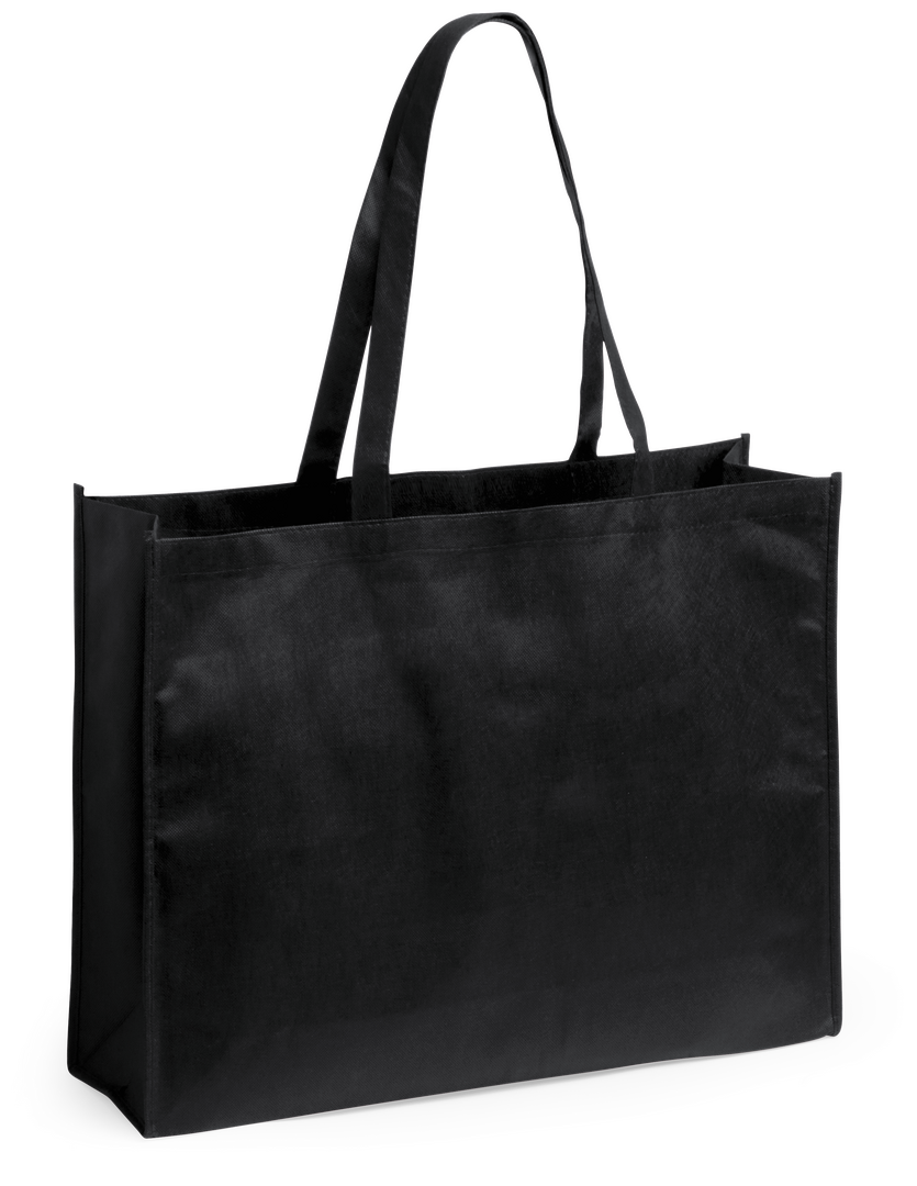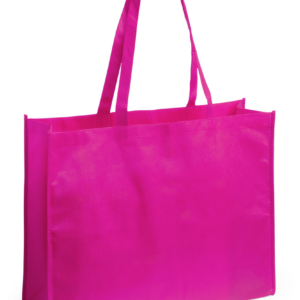 Bolsa en non-woven de 80g/m2, en variada gama de vivos colores. Con asas largas de 75cm, fuelle reforzado con ribete a juego y acabado cosido. Resistencia hasta 4kg de peso.