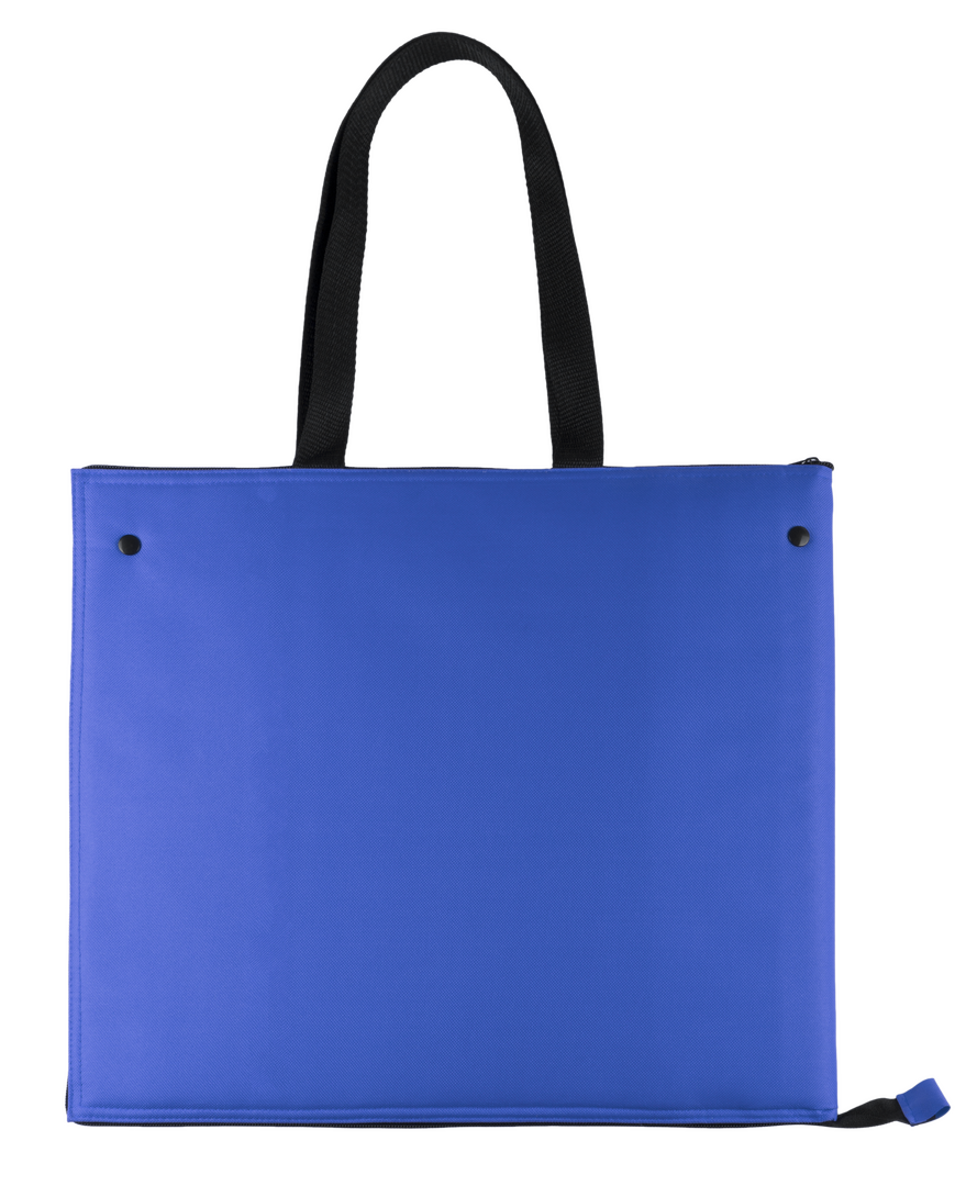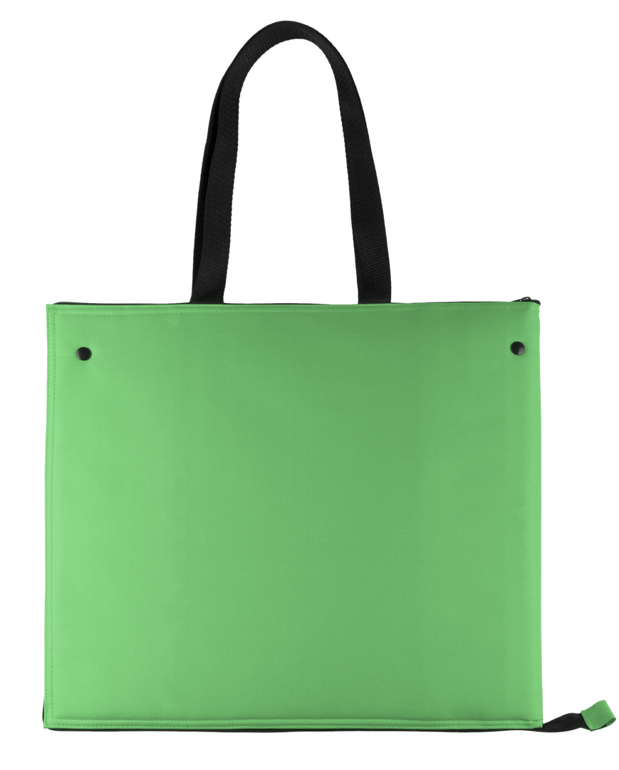 Bolsa nevera en resistente poliéster 600D con cierre de cremallera de apertura total. Con cómodas asas de transporte en nylon, refuerzos con cierre de corchete en esquinas superiores e interior isotermo en acabado de aluminio