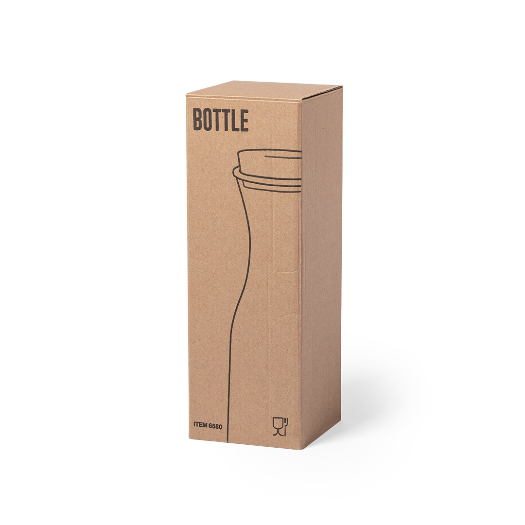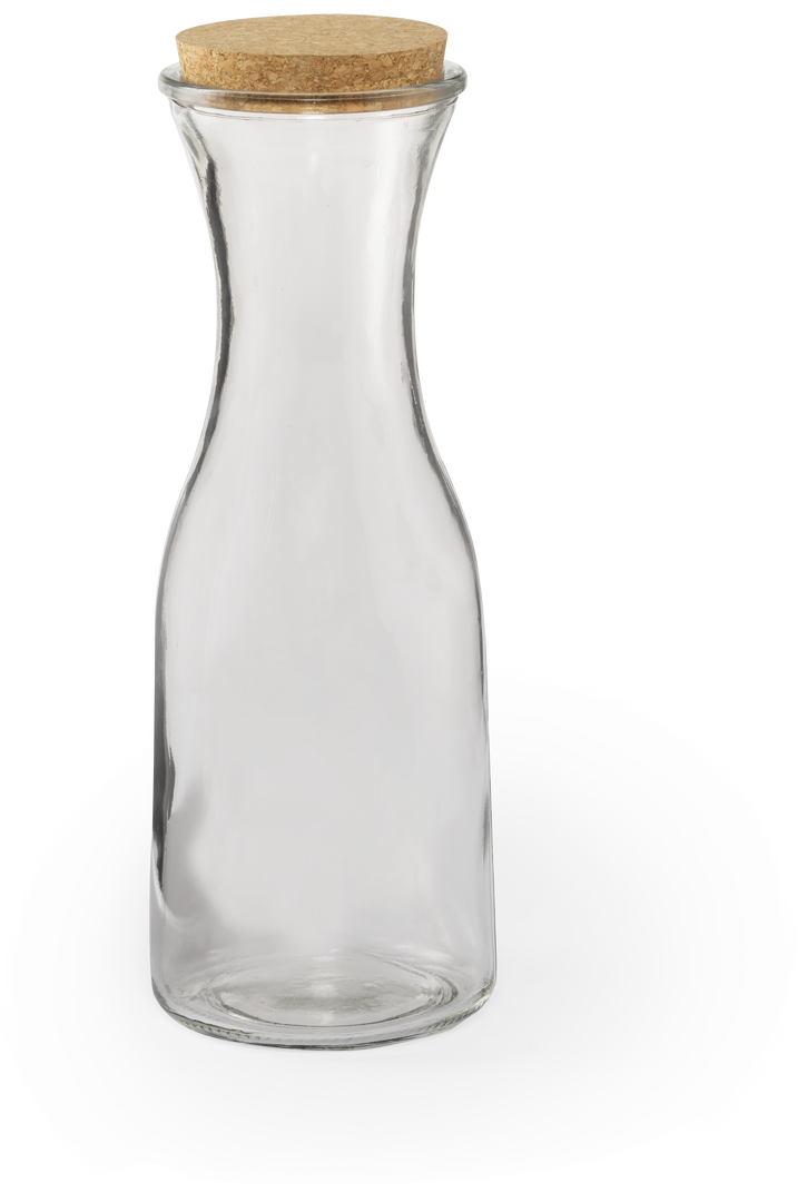 Botella de línea nature de 1l. Fabricada en cristal, con tapón de corcho natural y especialmente recomendada para agua y vino. Presentada en caja individual de diseño eco.