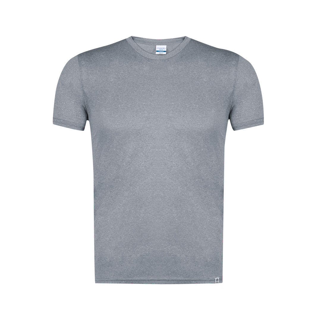 Camiseta técnica unisex. Confeccionada en tejido de poliéster 100% reciclado y color con efecto melange. Su gramaje de 135g/m2 hacen de ella una prenda ligera ideal para la práctica de deporte y para el día a dia. Tejido transpirable de fácil lavado y rápido secado. Tacto muy suave y corte moderno. Cuello redondo estrecho en canalé 2×2. Doble costura en dobladillo y mangas para una mayor durabilidad y resistencia al uso intensivo. Etiqueta fácilmente removible. Con etiqueta exterior RPET