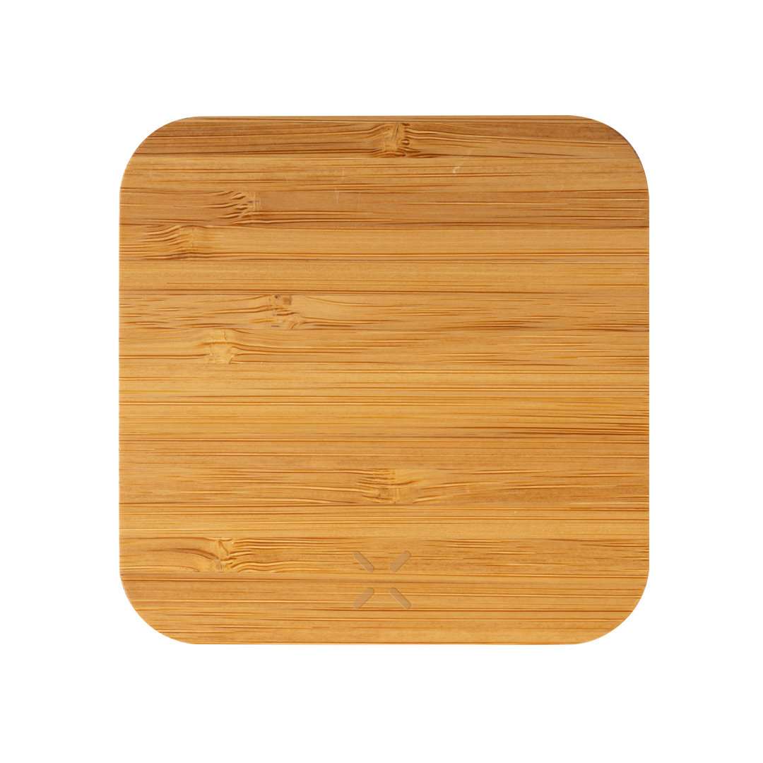 Cargador inalámbrico de línea nature. Carcasa en bambú procedente de cortes naturales. con salida USB dual de 2.100 mA de capacidad para carga simultánea de hasta 3 dispositivos (1 por carga inalámbrica y 2 por cable). Con base antideslizante y compatible con dispositivos equipados con tecnología de carga inalámbrica. Presentado en atractiva caja de diseño eco.