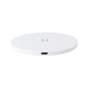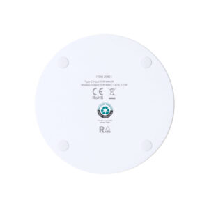 Cargador inalámbrico 15W de diseño circular fabricado en RABS. Compatible con dispositivos equipados con tecnología de carga inalámbrica Qi. Base antideslizante