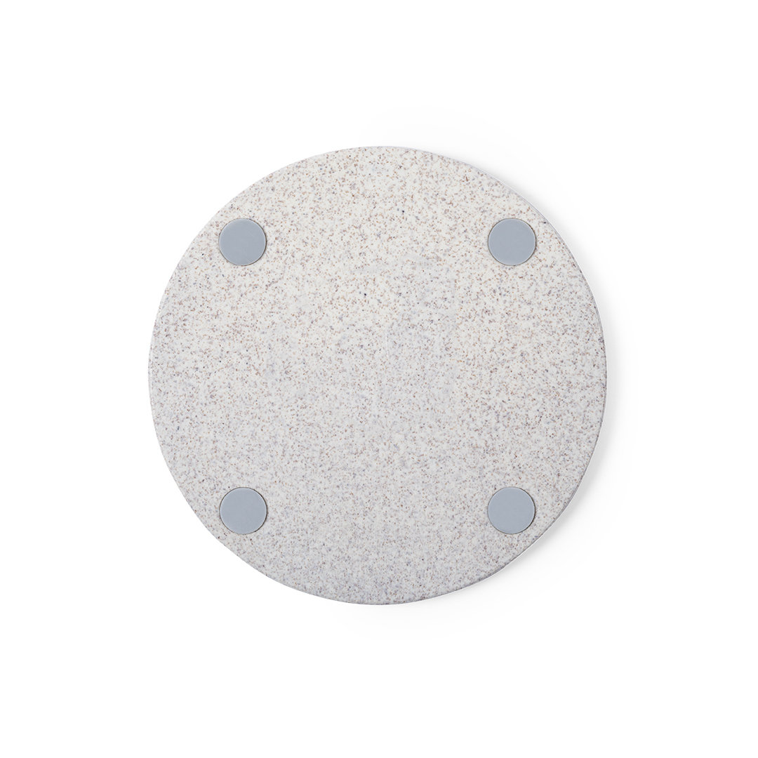 Cargador inalámbrico 10W de línea nature y diseño circular. Carcasa en combinación de materiales corcho natural y caña de trigo. Incluye cable micro USB de 1 metro de largo, con indicador de estado de carga y compatible con dispositivos equipados con tecnología de carga inalámbrica. Amplia superficie de marcaje y presentado en atractiva caja de diseño eco.