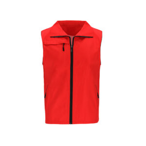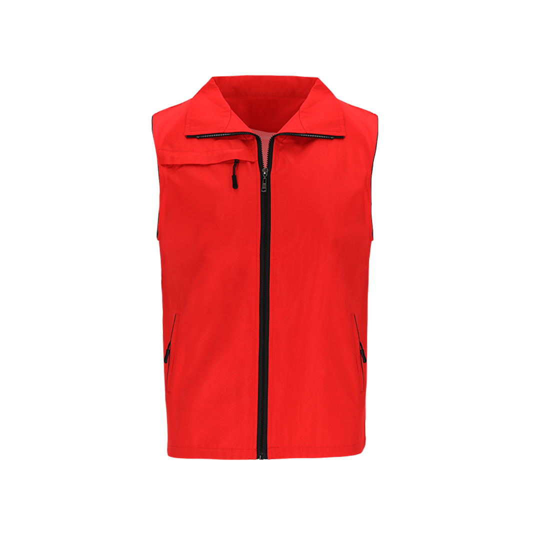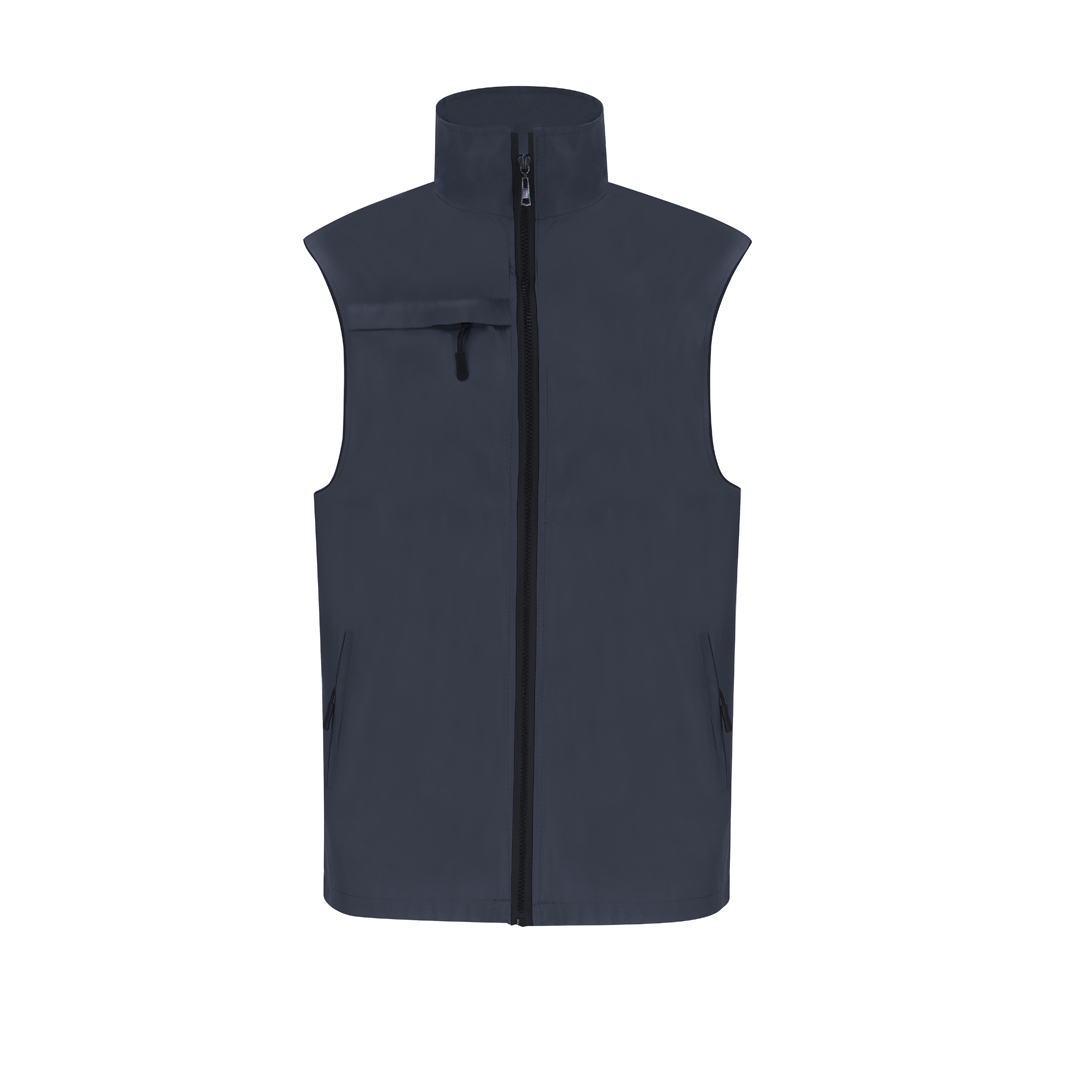 Chaleco Unisex de tejido ligero y transpirable con interior confeccionado en tejido de malla blanco. Con cremallera frontal negra y tirador plateado. Incluye un bolsillo exterior en el pecho derecho y dos bolsillos laterales con cremalleras y tiradores en color negro. Cuenta con media luna en el interior del cuello.