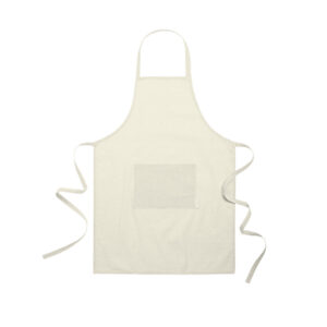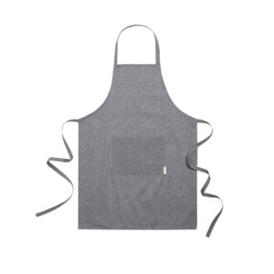 Delantal de línea nature, elaborado en algodón reciclado. Con bolsillo frontal y cintas de ajuste, de corte por debajo de la rodilla. Disponible en variada gama de colores, con distintivo algodón reciclado en etiqueta.
