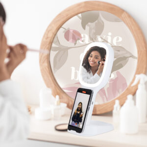 Espejo multifunción extraíble con versátiles funciones:- Espejo de aumento 1x por una cara y 5x por la otra.- Cargador inalámbrico de 15W.- Soporte para smartphone