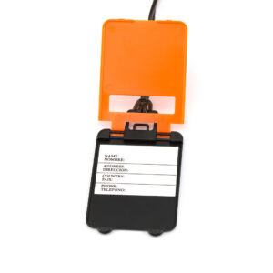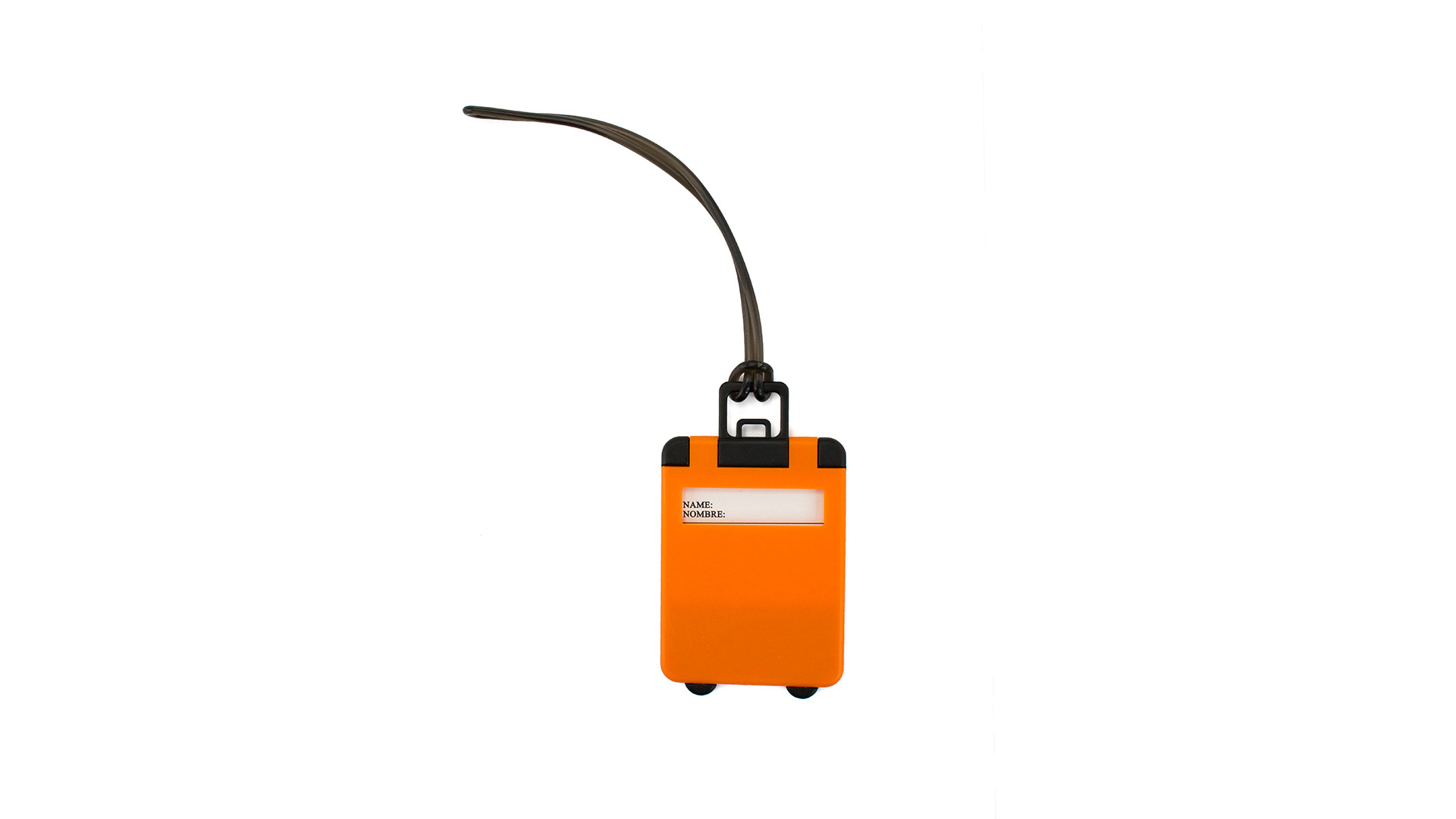 Original identificador de maletas de diseño de trolley en resistente material de combinación bicolor y extensa gama de vivos colores. Con resistente cinta de acople y tarjeta de identificación en castellano e inglés.