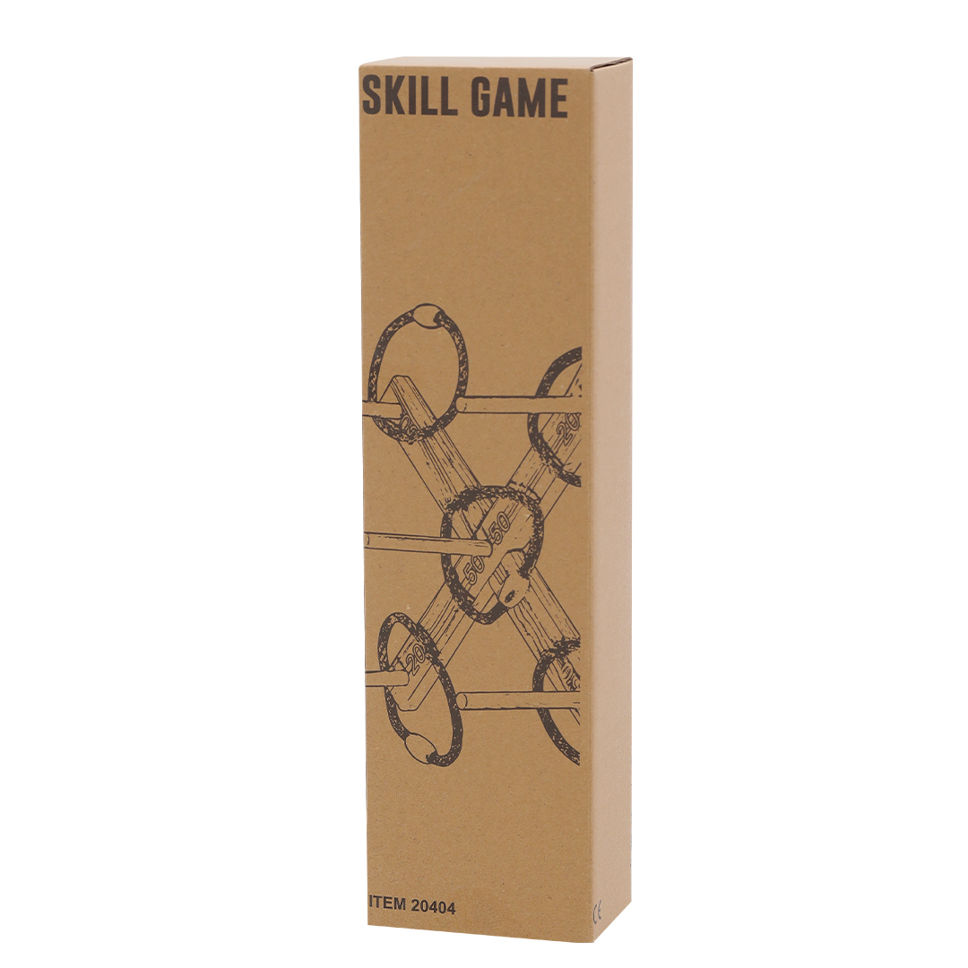 Juego de puntería fabricado en madera. Consiste en colar los aros de cuerda en la base con palos del mismo color (cada color tiene una puntuación diferente). Compacto y cómodo de montar