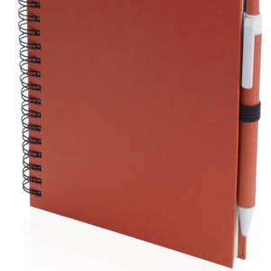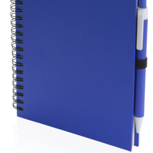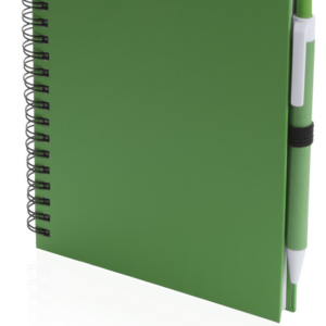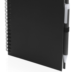 Set de libreta y bolígrafo. Libreta de anillas con tapas de suave tacto fabricado en cartón reciclado, y bolígrafo a juego. Contiene 70 hojas lisas con soporte para bolígrafo. Disponible en una atrevida gama de colores.