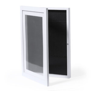Elegante marco de arte que combina funcionalidad y estilo. Ofrece un compartimento para almacenar diseños de tamaño A4 sujetos por bandas elásticas