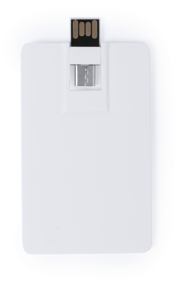 Memoria USB tarjeta de 16GB de capacidad, con conexión Tipo C y tecnología OTG. De diseño ultraplano, mecanismo plegable y especialmente diseñada para marcaje a todo color en digital. Compatible con dispositivos móviles Android con funcionalidad OTG. Presentada en funda individual.
