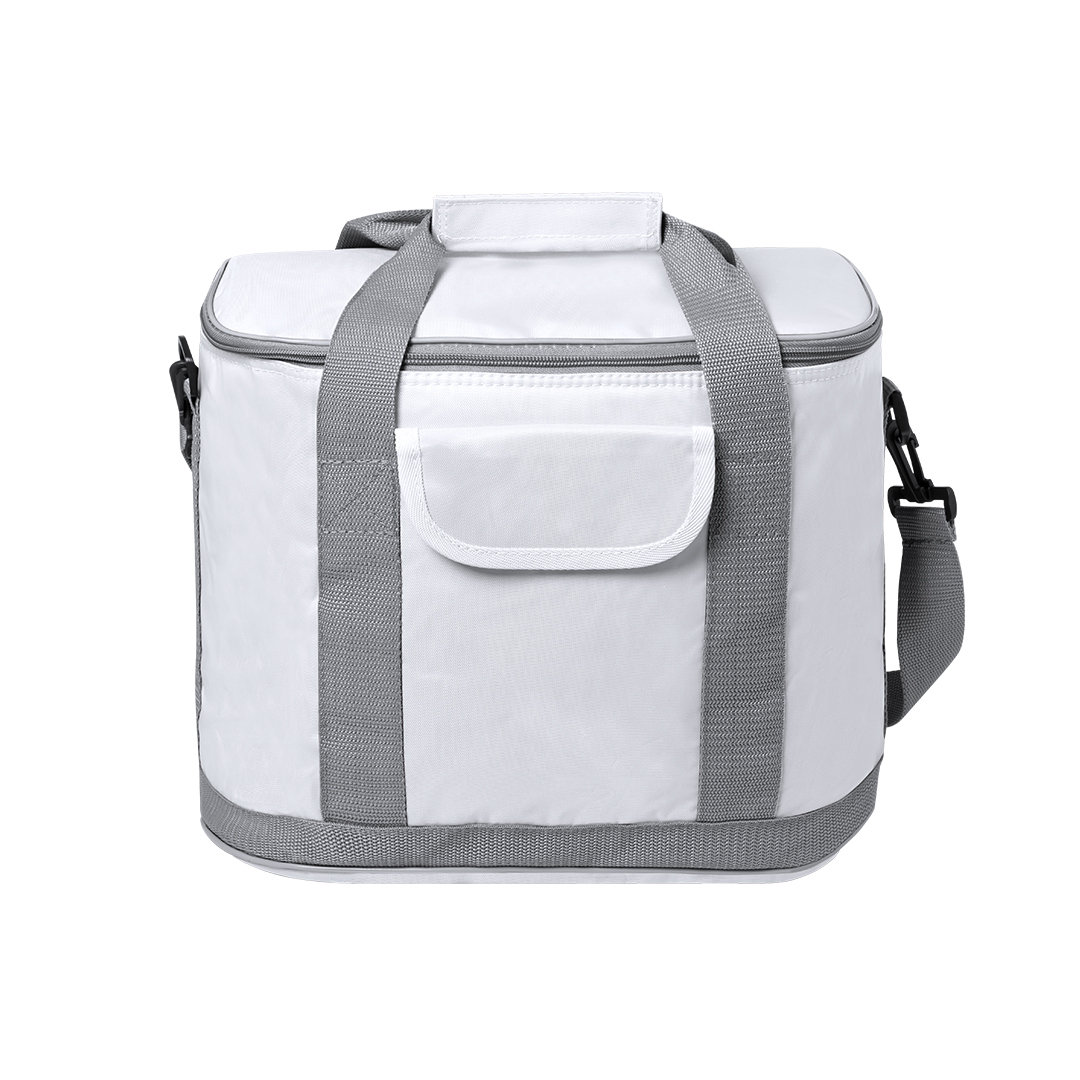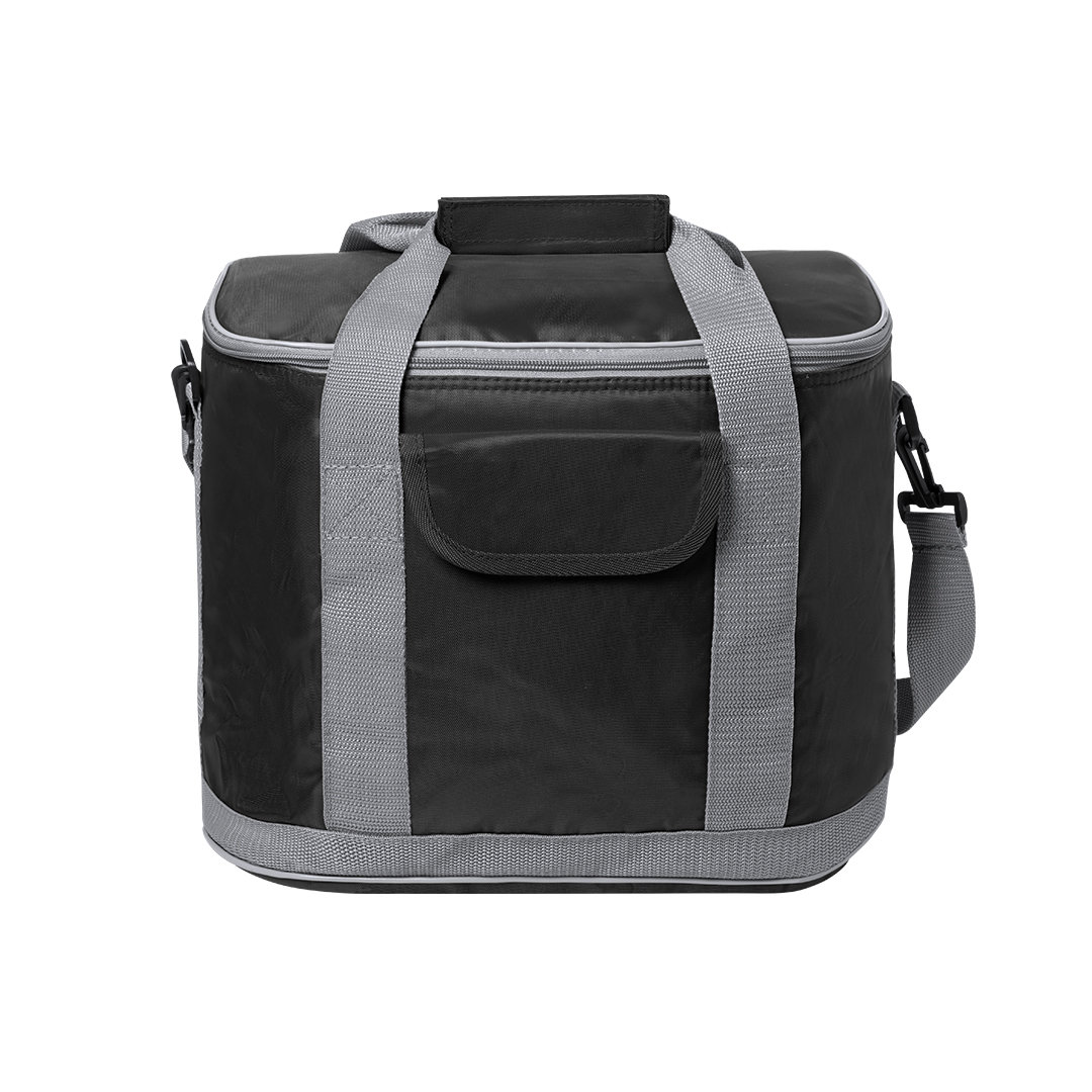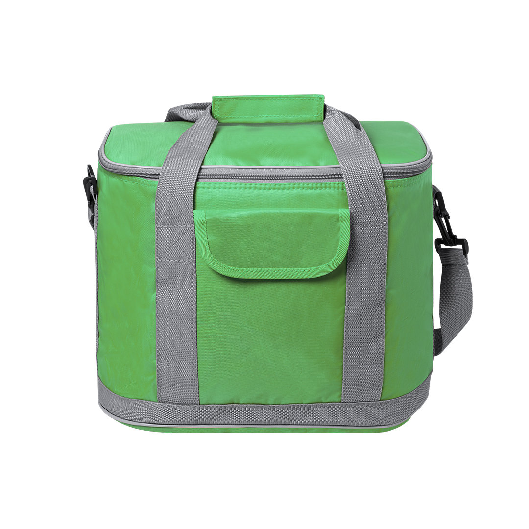 Nevera todoterreno en resistente poliéster 420D, con compartimento principal de cierre de cremallera y bolsillo en parte frontal con cierre de velcro. Interior isotermo en PEVA, con cinta para hombro ajustable y mosquetón de enganche. Resistencia hasta 8kg de peso.