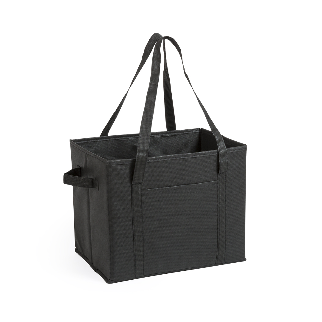 Organizador plegable para el maletero del coche en resistente non-woven de vivos colores. Con asas de transporte reforzadas, asa lateral, bolsillo frontal y base rígida para un firme ajuste.