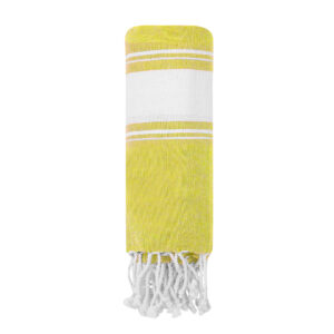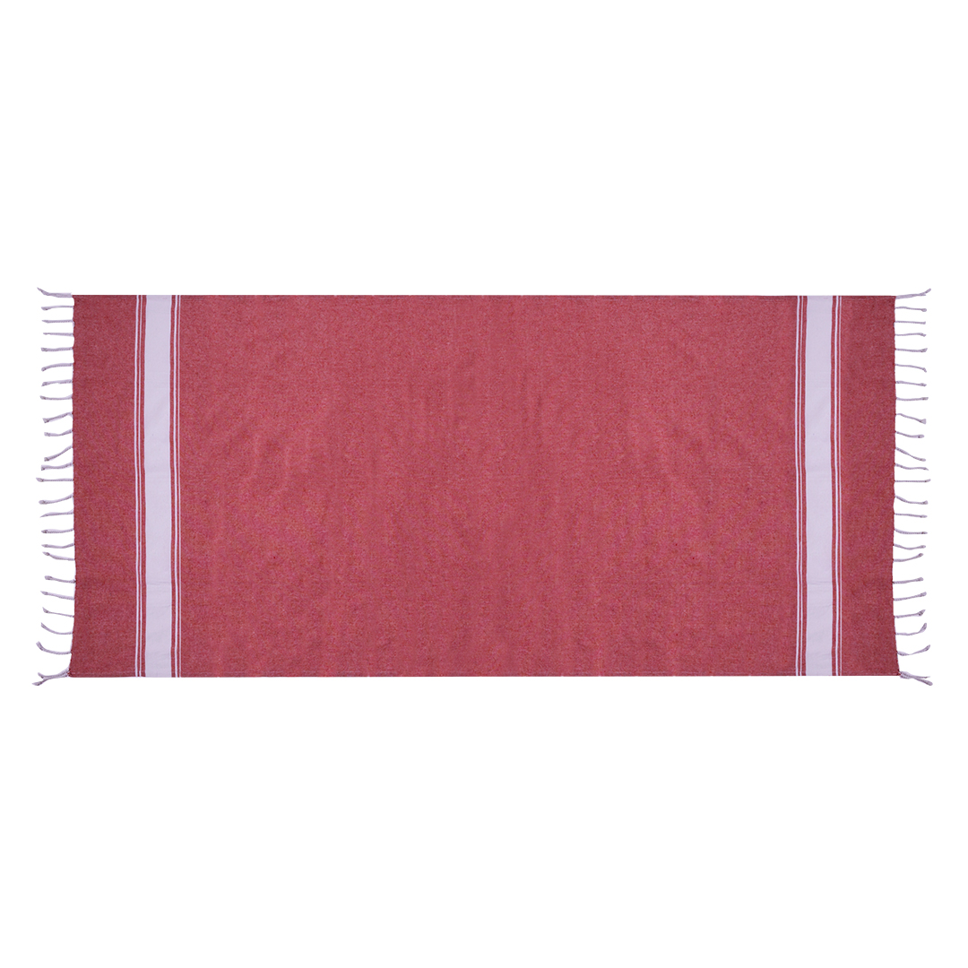 Suave pareo de toalla de 180g/m2 en combinación de algodón y poliéster. Disponible en variada gama de colores en tono bicolor. Presentado individualmente en bolsa.