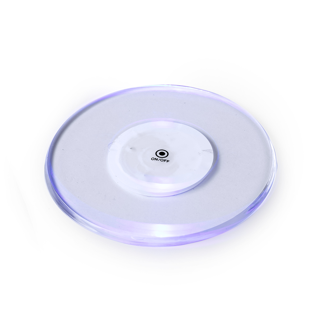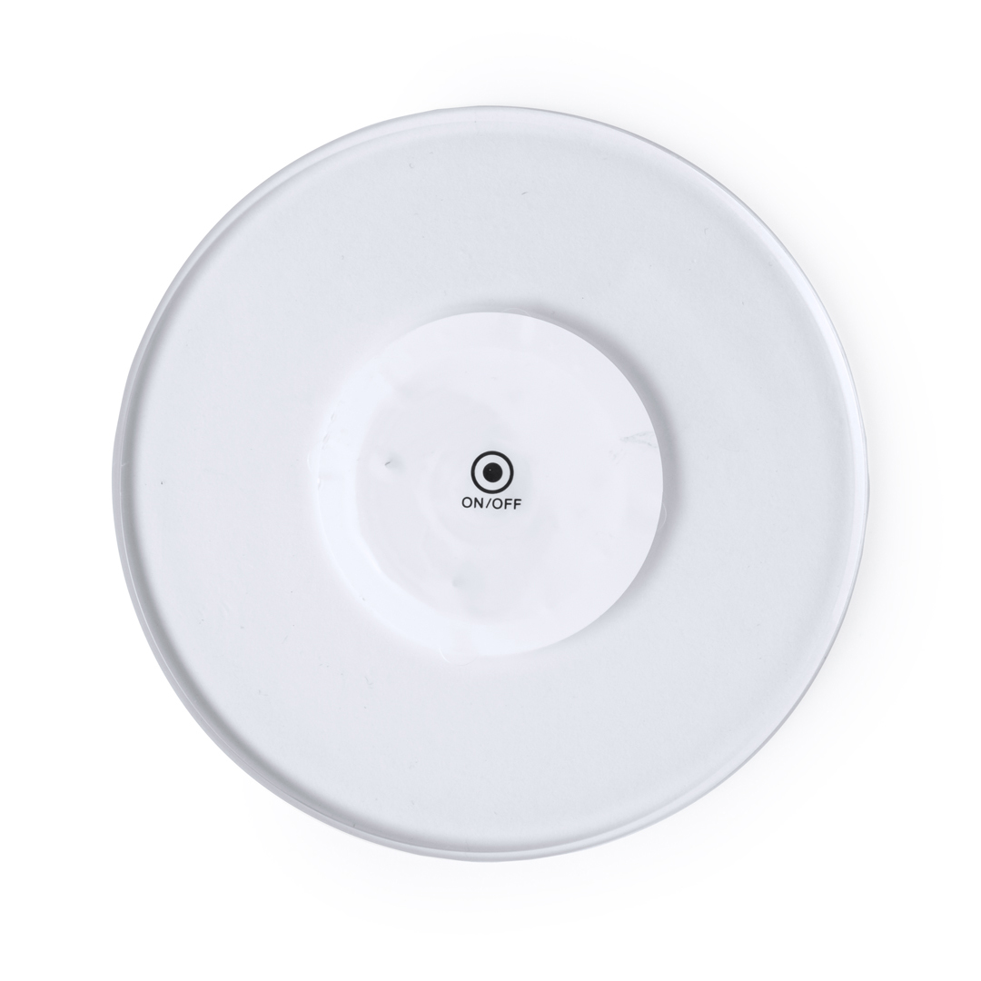 Original posavasos con 6 LEDs para iluminar las bebidas. Con botón en la base y 3 posiciones de iluminación (luz fija y luz intermitente rápida o lenta) . Se fija a la base de cualquier bebida con cinta autoadhesiva y está alimentado por dos pilas de botón (incluidas).