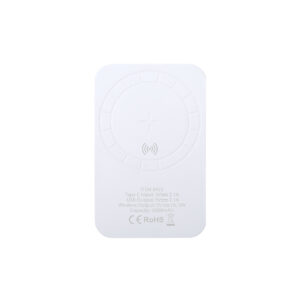 Batería auxiliar externa con tecnología de carga inalámbrica de gran capacidad -5.000 mAh-. De diseño compacto y con fijación magnética para poder usar el dispositivo mientras se produce la carga del mismo. Conexión Tipo-C de entrada de corriente y USB de salida, con cable de carga tipo C incluido. Botón ON/OFF, ledes indicadores de estado de carga y amplia superficie de marcaje. Presentada en atractiva caja de diseño, con manual de instrucciones en español e inglés. Incluye anillo adhesivo, siendo válido para todos los dispositivos con tecnología Magsafe y Qi.Las capacidades mostradas en todas nuestras baterías auxiliares externas son reales, incorporando todas ellas baterías de grado A y no recicladas, con una vida útil de al menos 500 ciclos de carga y según normativa CE. Además, están fabricadas conforme a los estándares RoHS y en cumplimiento con los siguientes requisitos de seguridad: Sistema de protección contra sobrecarga del power bank. Sistema de protección contra descarga completa que proporciona una mayor durabilidad del power bank. Sistema de bloqueo para evitar cortocircuitos. Sistema de transferencia de carga constante, acorde con la capacidad del dispositivo de destino.