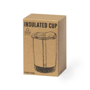 Vaso fabricado en acero inox reciclado en 350 ml de capacidad. Combinación de base en corcho natural con cuerpo en acero inox reciclado de acabado plata. Con doble pared para mejor y más duradera conservación de la temperatura. Original tapón dosificador transparente de fácil apertura
