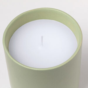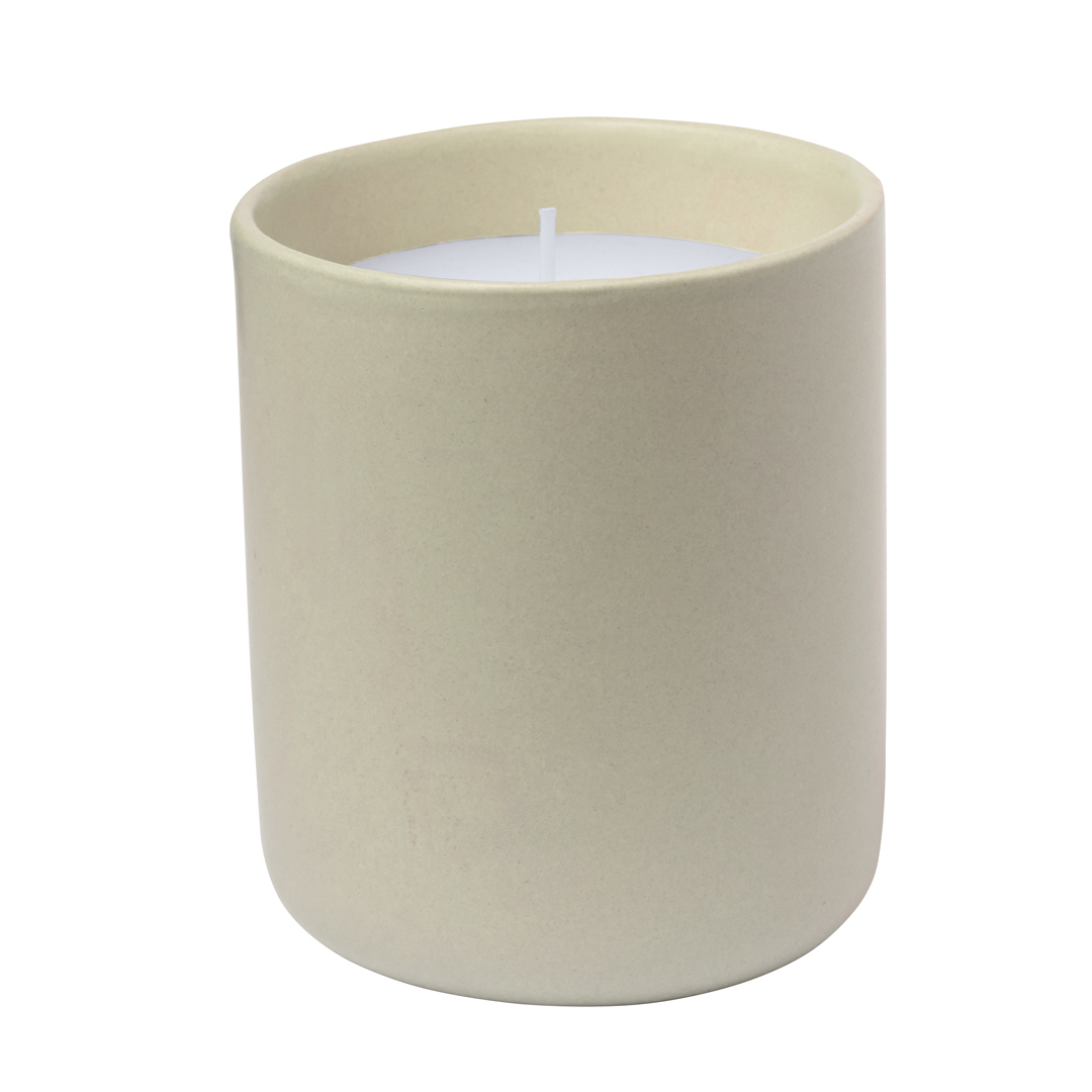 Vela aromática en tarro de cerámica con aroma a vainilla. Disponible en cristal de elegantes colores de tonos naturales. Presentada en caja individual diseño kraft.